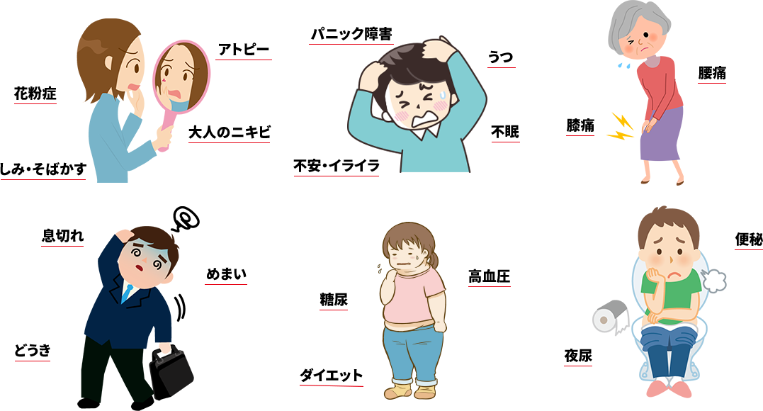 経験豊富な薬剤師が、東洋医学の知識を生かした漢方薬・生薬を処方。不妊症や便秘など女性特有のお悩みから、腰痛、膝痛、アトピー、鼻炎、ニキビなどの慢性・アレルギー性の症状、「がん」などの病気などのお悩み解決をサポートいたします。