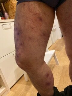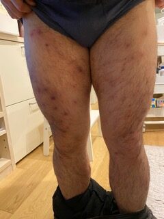全身に アトピー性皮膚炎があり、 下半身が特に化膿しやすく、掻いてしまう