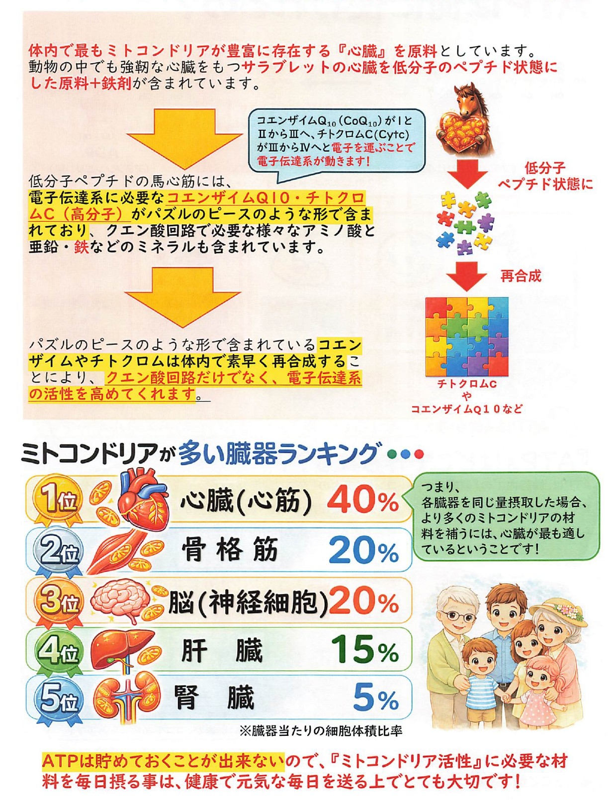 サラブレッド馬心筋エキス末にヘム鉄を加えた補助食品あります。